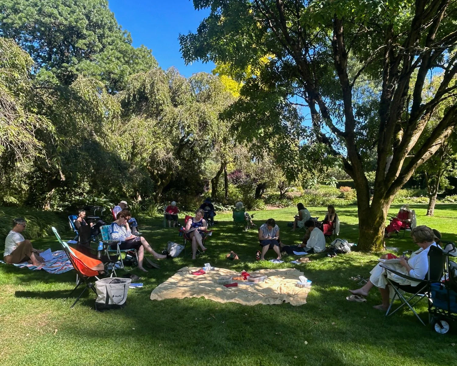 When the day arrived, I took my folding chair, a notebook and a pen, and off I went. After a warm greeting at the entrance, we headed to a shady spot in a grassy area underneath a mature tree. I noticed some chatty songbirds as I walked along. Amidst immensely enchanting surroundings, I stood still for a few moments, here and there, soaking in the beauty of nature.