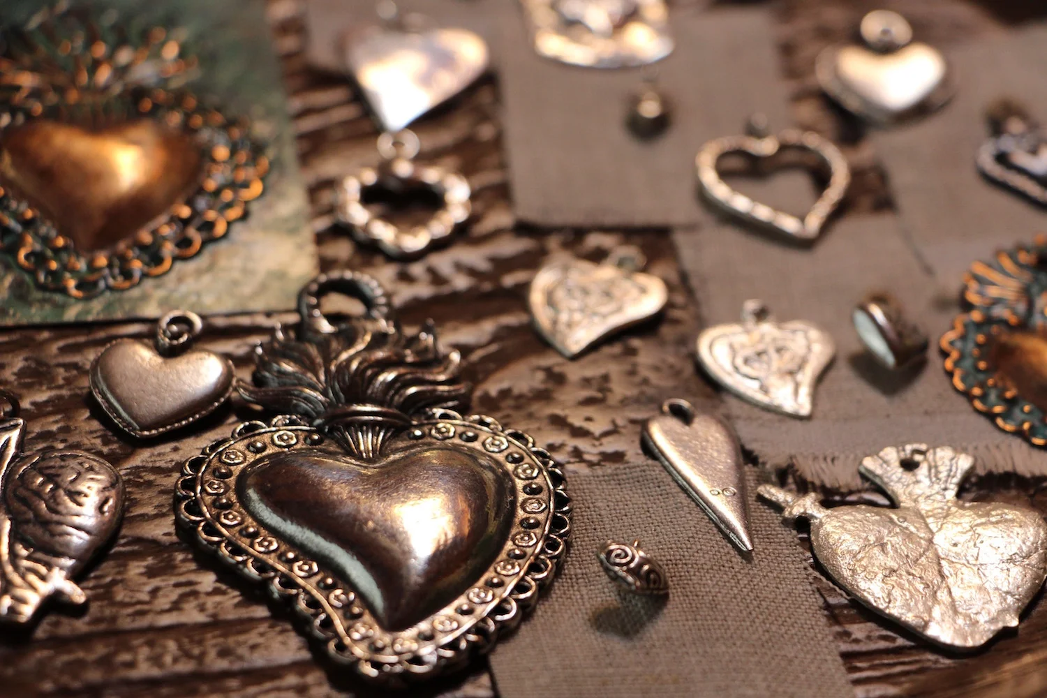 Milagros or "miracles" are miniature metal replicas of arms, legs, other body parts, animals, tools, praying figures, hearts etc. Such charms are used as votive offerings to enlist the aid of the divine, or express thanks to the deities and saints. In return for favours granted or blessings received, one makes a promise or vow—to go on a pilgrimage, or to repay a debt with devotion. This vow or promise is symbolized by the milagro, which is often worn for the duration of the vow's fulfillment and then offered at an altar, icon or sacred destination.